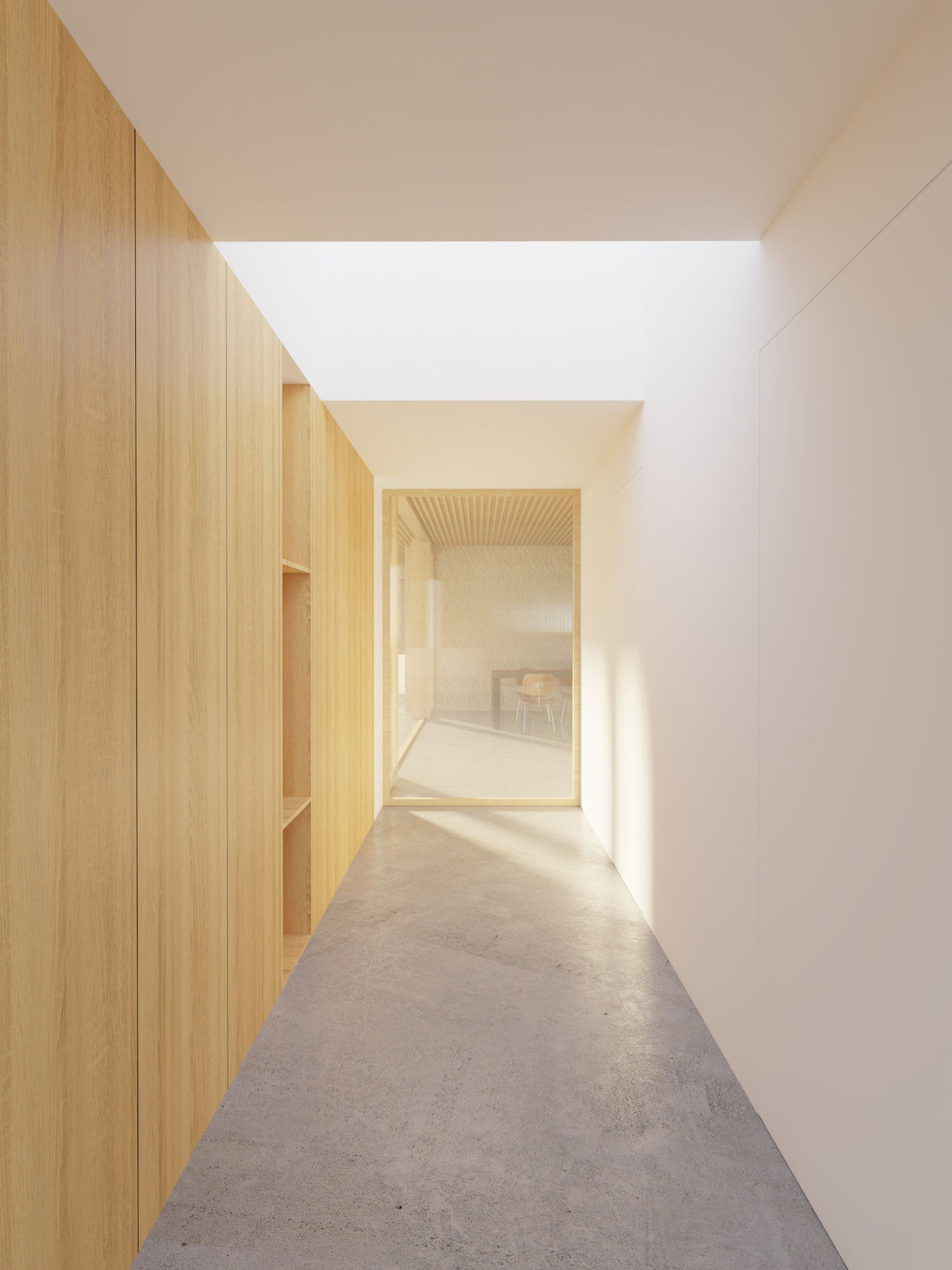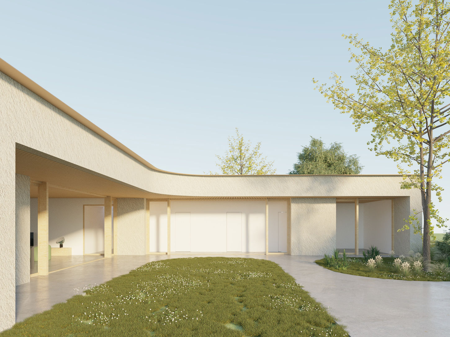 Ampie vetrate a sud e a nord garantiscono luce naturale e continuità visiva con l’esterno, creando un forte legame tra l'ambiente abitato e il paesaggio. La distribuzione interna, semplice ed efficace, rispetta i principi della bioarchitettura, puntando su comfort, orientamento e sostenibilità ambientale.
