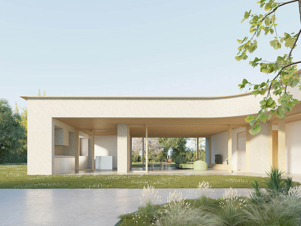 Basato sull’uso di materiali naturali e traspiranti come legno di abete, paglia, calce naturale e lolla di riso per l’isolamento, il progetto di questa villa unifamiliare è un esempio concreto di architettura sostenibile.
