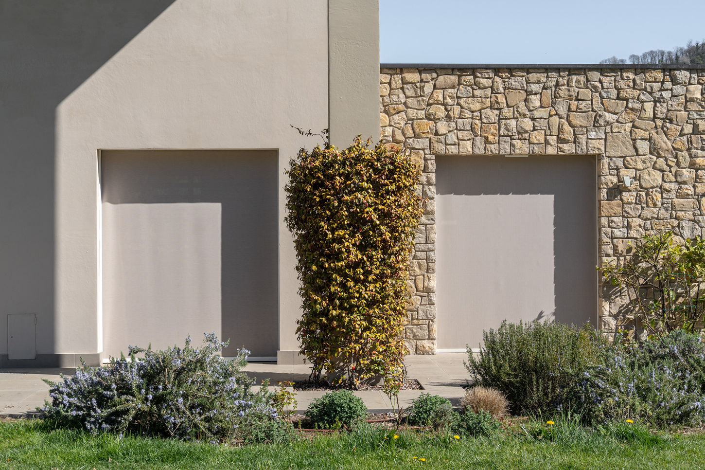 L’edificio cerca con l’accentuata articolazione volumetrica di inserirsi nel contesto boschivo ed agricolo, aprendosi ad esso con le ampie finestre e lasciandosi attraversare da luce, aria e naturalità arborea.