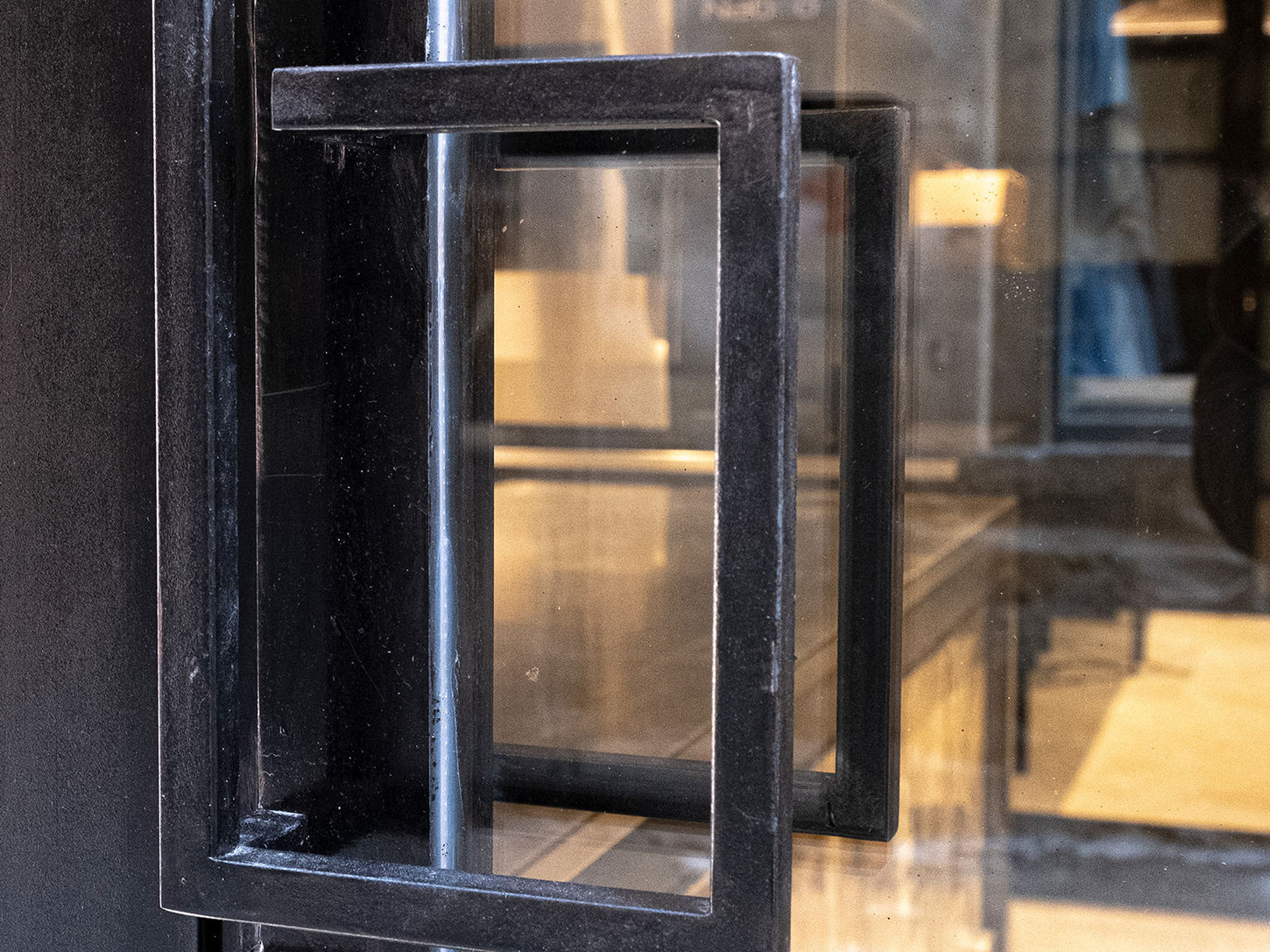 Il bancone espositivo è stato arricchito sul fronte da un’opera dell’artista bergamasco Maurizio Mazzoleni, essa accoglie i clienti celebrando la panificazione come gesto quotidiano di passione, dedizione e memoria collettiva.